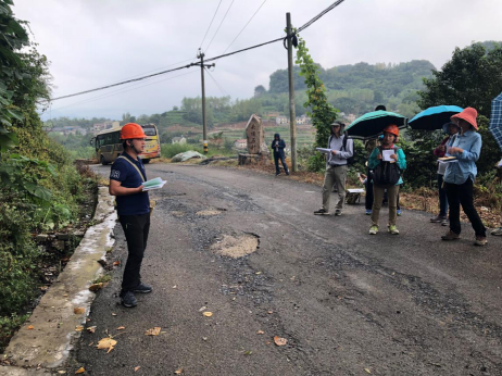 鲍晓欢在链子崖给061164班员工讲新滩滑坡的成因(9月3日)