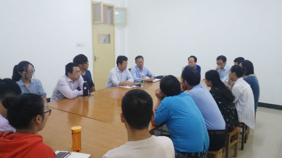 公司领导一行在基地教室倾听教员们的工作汇报和实习建议