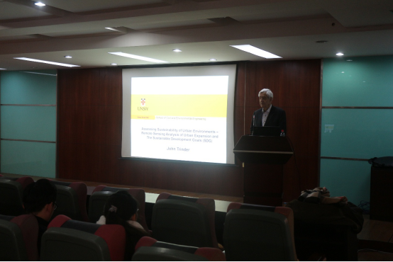 (通讯员陈涛、杨玮莹)2018年12月12日上午,国际著名摄影测量与遥感学家John Trinder教授应邀到访公司,并在222学术报告厅为全院师生做了题为“Assessing Sustainability of Urban Environments - Remote Sensing Analysis of Urban Expansion and The Sustainable Development Goals (SDG)”的学术报告。报告会由402永利集团地球信息科学与技术系书记陈涛副教授主持,402永利集团地球信息科学与技术系主任王毅教授,地球信息科学与技术系相关教师及研究生参加了学术交流会。