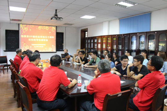 10月2日上午11点,毕业10周年返校聚会员工与员工座谈会在物探楼214会议室顺利举行,倪治宝、高海、、杨涛、、任天翔、闫立爽、黄寄洲、梁玉楠、何良、刘星、郭俊峰、方菲、杜劲松、王勇、傅磊、杨通等15位员工以及30余位在校员工进行了座谈交流。