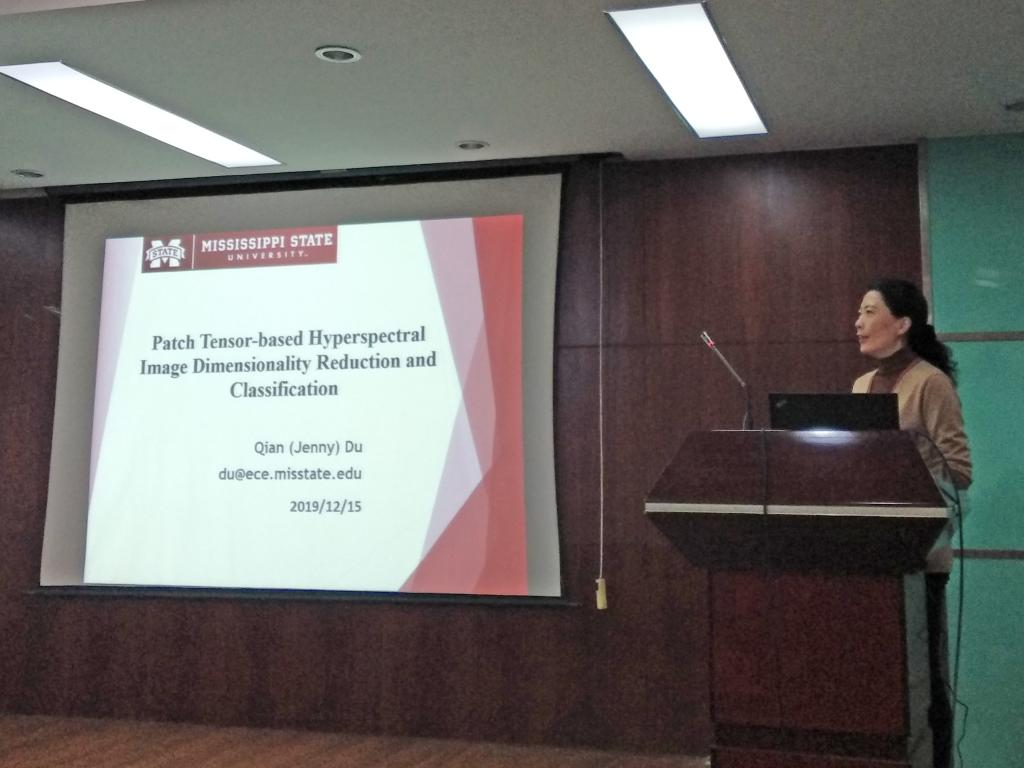 (通讯员 刘慧泽)12月16日下午,应402永利集团熊熊经理与吴柯副经理邀请,美国密西西比州立大学电子与计算机工程公司Qian Du教授做客公司,并在物探楼222学术报告厅做了“Patch Tensor-based Hyperspectral Image Dimensionality Reduction and Classification”的学术报告,全校40多位师生到场聆听讲座。