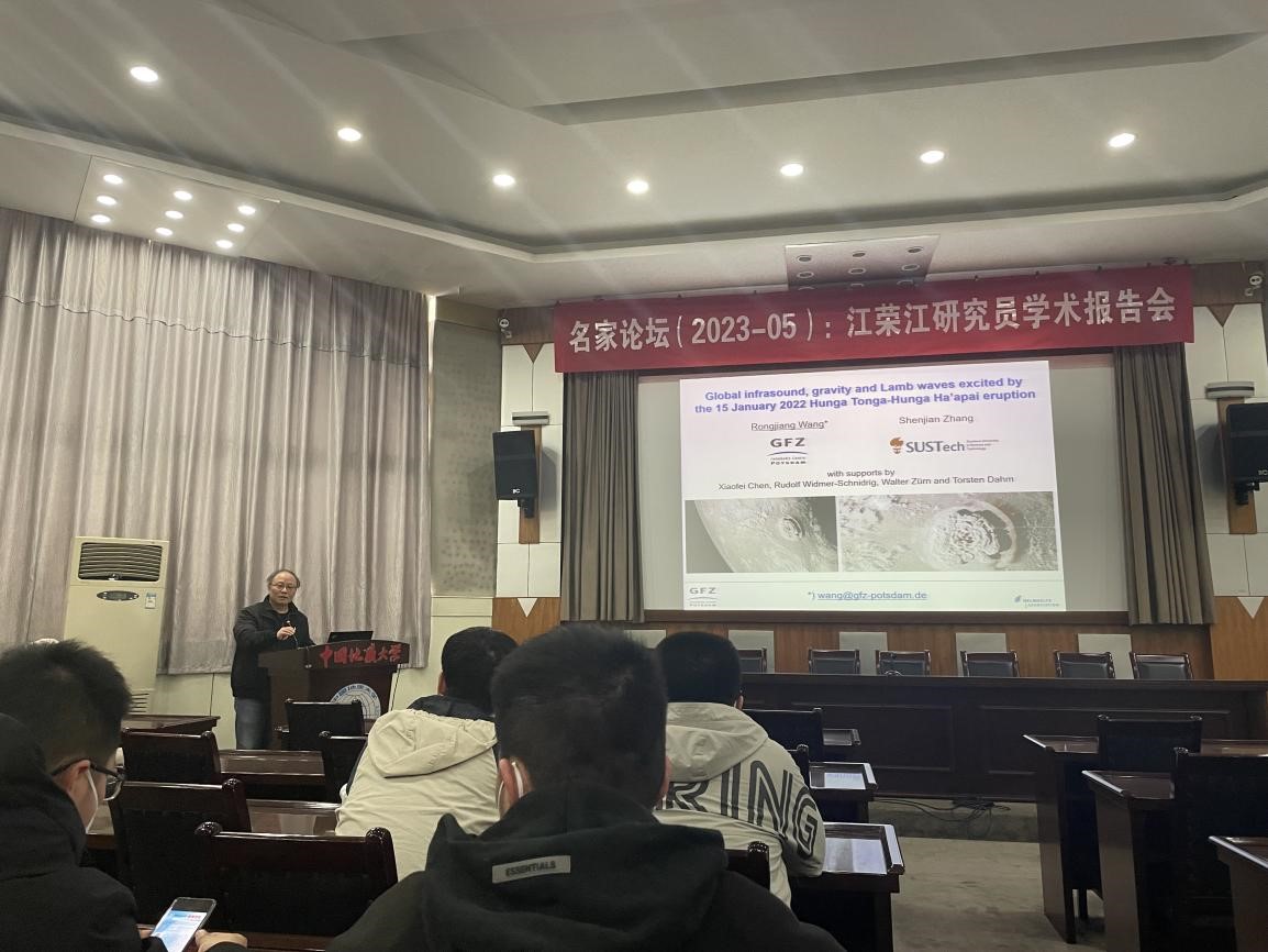 (通讯员 郑勇)应402永利集团“名家论坛”和402永利集团熊熊教授、胡祥云教授邀请,德国地学中心(GFZ)资深研究员国际著名地球物理学家汪荣江教授于2023年3月17日来校访问,在地质大学东区八角楼学术报告厅以“2022年1月15日汤加火山爆发引起的全球大气次声波、重力波和Lamb波”为题做了精彩的学术报告。