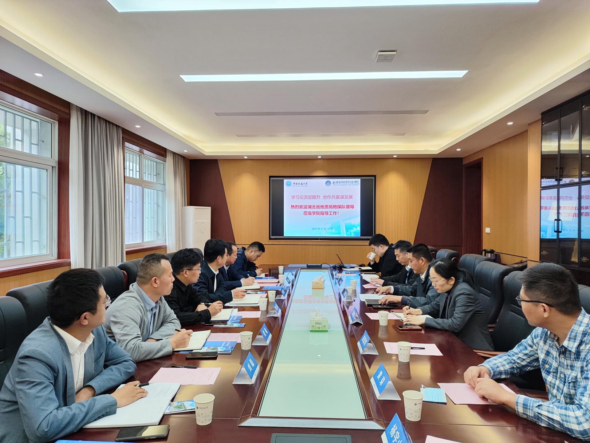 湖北省地质局物探队党委书记、队长任康进,副队长、总工程师李成香及徐元璋主任、石仲、周巍副主任,刘磊副所长参加交流,公司党委书记马彦周、副书记黄金波、副经理陈丽霞、校就业指导处彭鑫副科长及教师代表彭荣华、杨宇山、黄荣参加座谈学习。