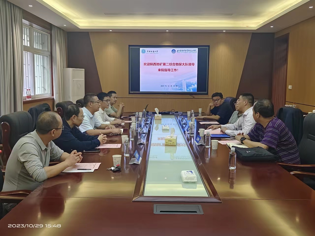 10月29日,陕西地矿第二综合物探大队有限公司副总经理、总工程师牛峥、总工程师办公室副主任秦长春员工来院交流座谈。公司党委书记马彦周、副经理罗银河和部分老师参加座谈会。