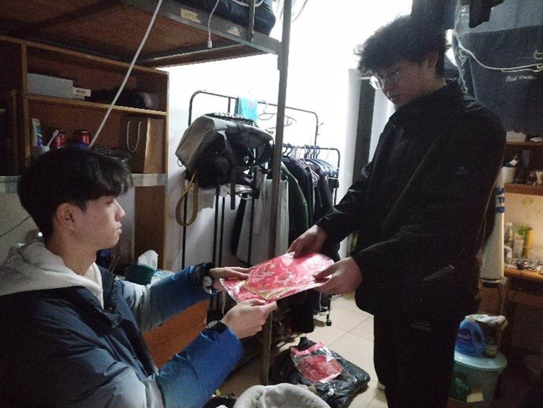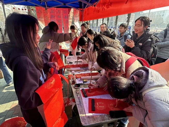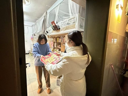员工组织上门为广大同学们送上了精美的福字和窗花。福字和窗花不仅寓意着福运临门、吉祥如意的美好祝愿,还具有浓厚的民俗文化气息,让同学们感受传统文化的魅力。