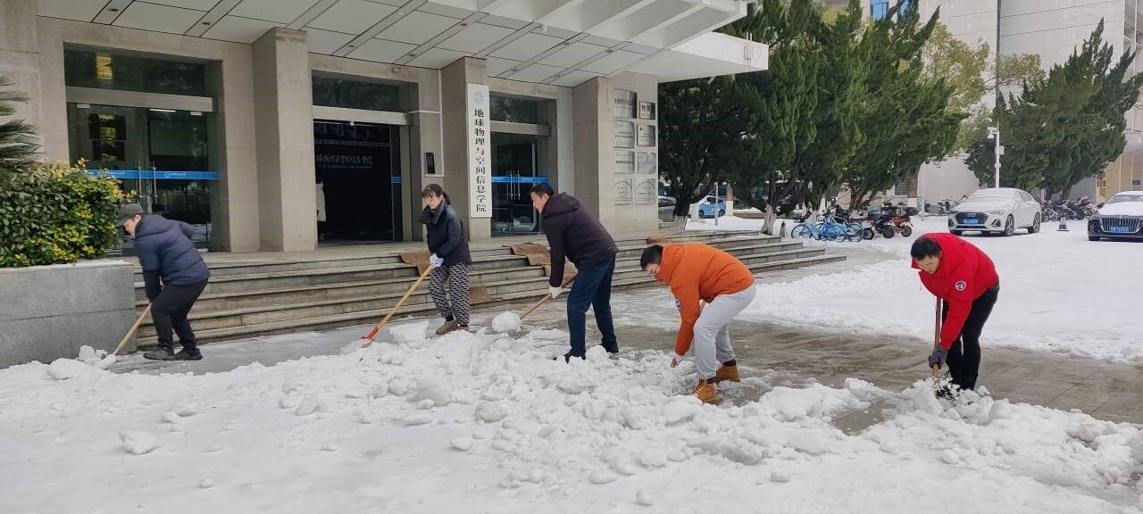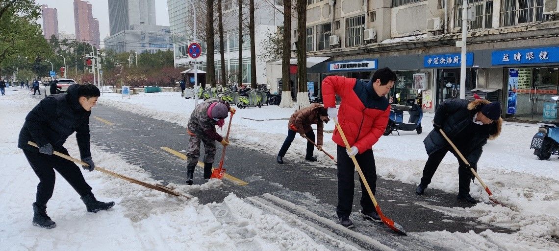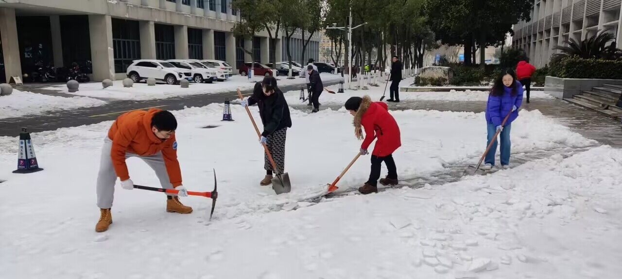 (通讯员 祁阳阳)时值新学期开学,武汉出现新一轮低温雨雪冰冻天气。公司迅速部署,于2月23日上午组织教工党员进行清雪除冰工作,消除路面隐患,清通物探楼、基础楼等楼栋进出通道,确保师生安全出行。